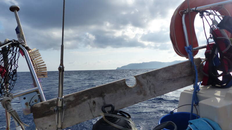 Arrivée à Santa-Maria après 4 jours de mer au départ de Porto-Santo : Yes Aï se fraye un chemin entre les digues vers les pontons de Vila do Porto... chaud patate !